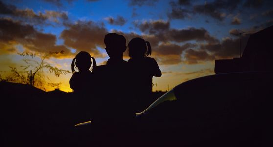 Slide Scan (1961) - Father stands watching a sunset with his two daughters.
